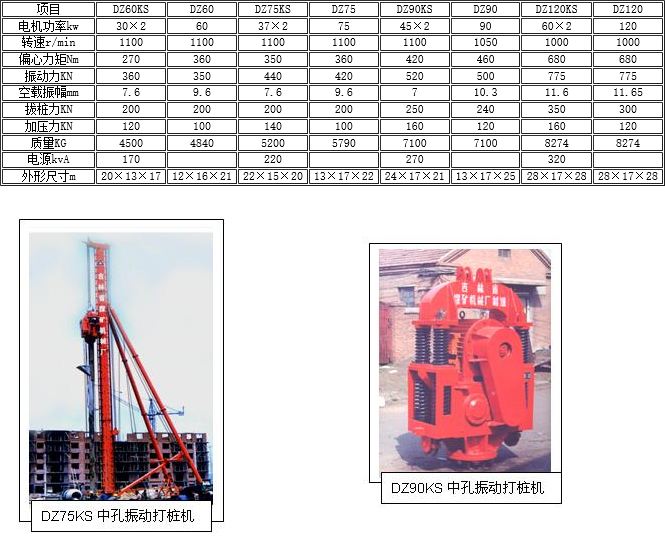 DZKS系列中孔雙電機振動打樁機與樁架配套使用。除有普通震動錘功能外,錘中間開有φ500mm通孔,可直接放置鋼筋籠。DZ系列采用特制強力V形帶,傳動效率高,不易打滑,使用壽命長。減震效果好,起動平衡,噪音低等特點。